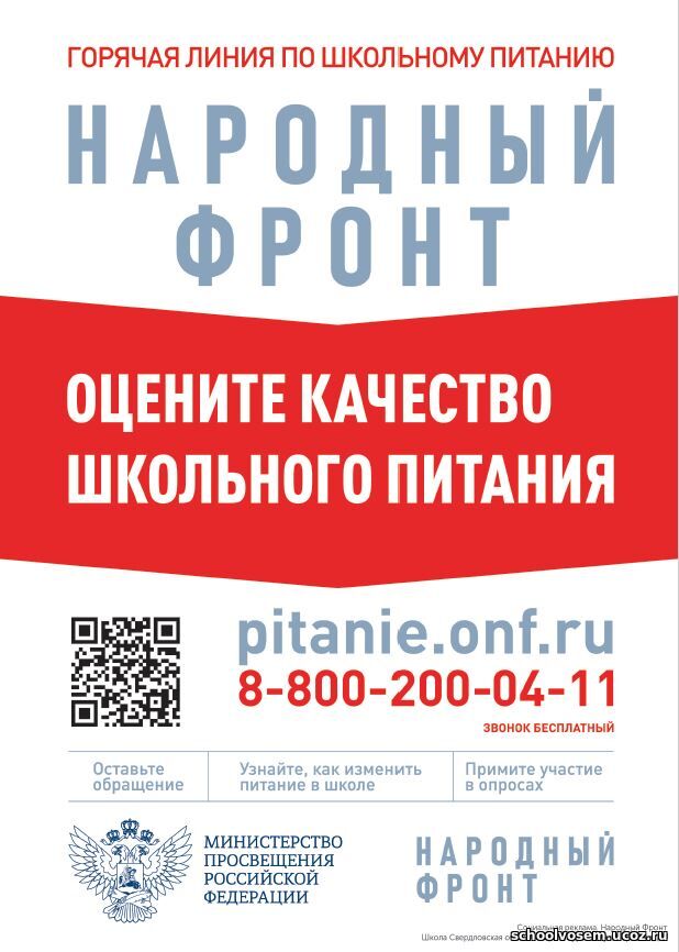 Министерство просвещения Российской Федерации по вопросам организации горячего питания для школьников: +7(800) 200-91-85;